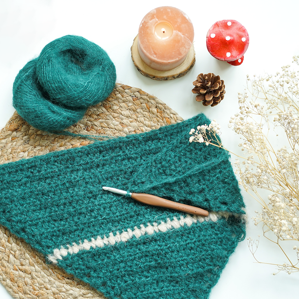 Toen ik deze foto’s op Instagram deelde vroeg ik of mijn volgers of ze ook graag een gehaakte versie van de Autumnwalk – sjaal wilde zien. De reacties hierop waren positief. Met groen garen die ik nog had liggen begon ik aan de gehaakte versie van de sjaal. Vinden jullie het er ook al op lijken?