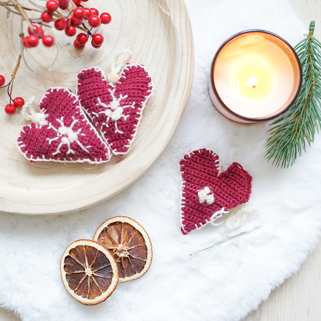 Deze kerst leek het mij leuk om dit weer te doen, met veel aanmoediging van jullie op Instagram. Dus daarom paste ik het patroon het een beetje aan en kon iedereen die het leuk vond, mee doen met #spreadthechristmaslove2023. Hieronder zie je een aantal afbeeldingen van hartjes die ik haakte, om vervolgens uit te delen.